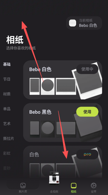 3、为了让照片的效果拍摄更加接近真实感,这里为大家提供了许多风格的相纸可以挑选,按照实际拍摄需求在分类中查看就是。