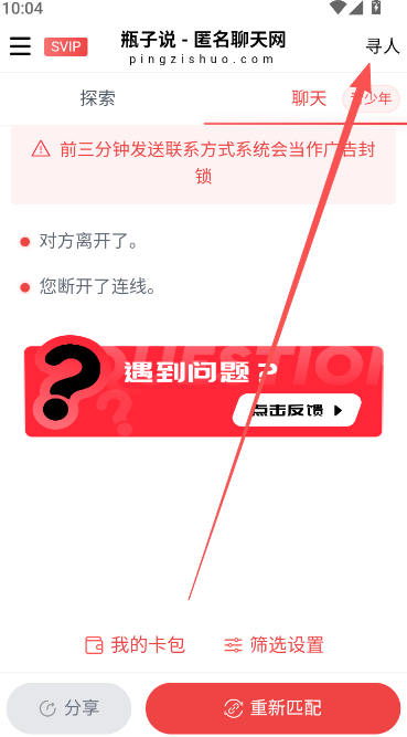 4、自动配对功能,平台帮助用户在线配对感兴趣的聊天好友,快速找到志同道合的人。