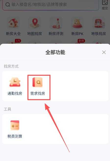 2、然后找到并点击需求找房