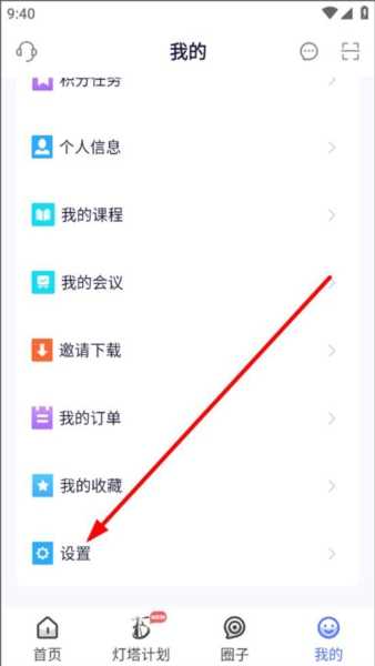 2、我的页面,用户可查看积分商城、积分任务、个人信息、课程等,下拉找到设置;
