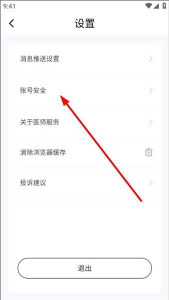 3、进入设置页面,有消息推送设置、账号安全、关于软件、投诉建议等,点击账号安全;