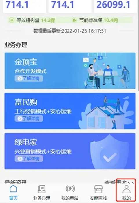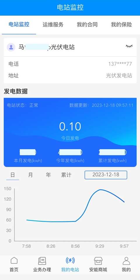 在App首页,可以看到自家屋顶光伏电站本月发电量、本年发电量和累计发电量。点进“我的电站”,查看电站实时发电功率、运维服务和电子合同等,点进“我的光伏钱包”,查询售电收益发放情况、操作收益提现到卡。足不出户,一手掌握电站运行状况。