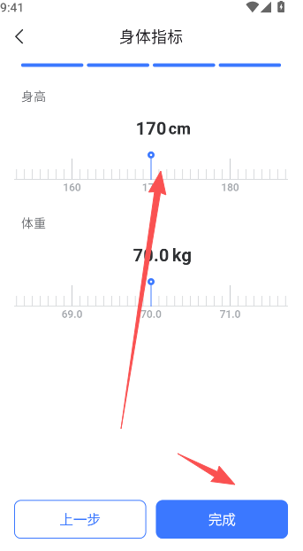 5、随后在身高指标界面,完成用户体重的设置。