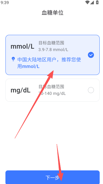 3、设置你血糖数据记录单位。