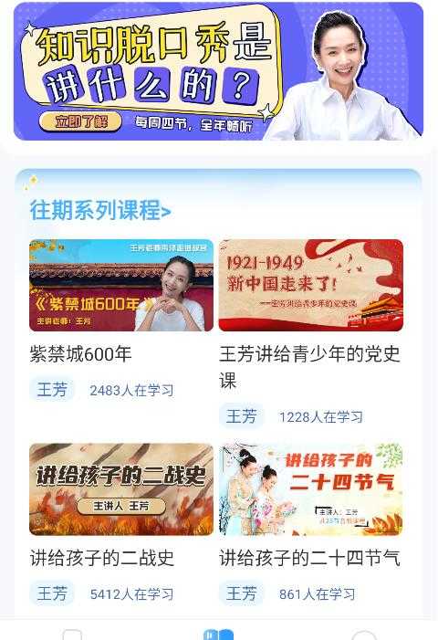 知识脱口秀是一个致力于为孩子们和家长们提供丰富教育资源的独特平台。它以趣味脱口秀为核心形式,将科学启蒙和艺术素养等多元知识融入轻松幽默的节目中,让孩子在欢笑中主动吸收知识,激发学习兴趣,平台汇聚权威教育专家与优质内容资源,提供海量音视频课程及个性化推荐服务。不同方面的启蒙课都能在这里找到相关推荐,根据孩子情况来获取对应课程,是提高育儿能力的好帮手。