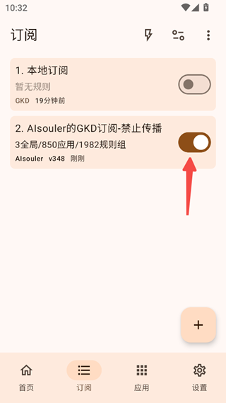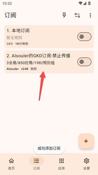 2、授权完毕后进行规则导入,操作如下,在界面中点击底部订阅。
