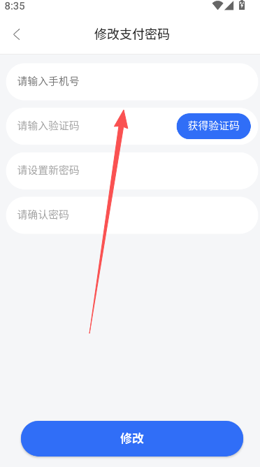 3、输入手机号码短信验证码信息,完成对支付密码的修改具体操作。