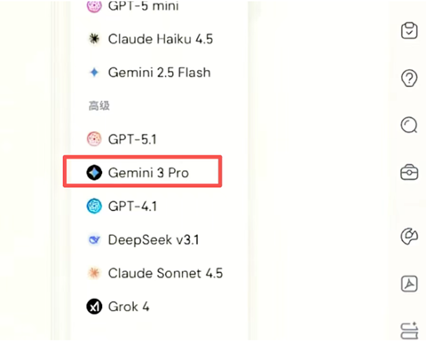 3)从模型列表选择【Gemini 3 Pro】