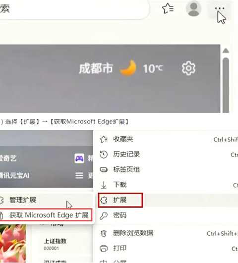 1)打开Edge浏览器,点击右上角菜单(三个点)