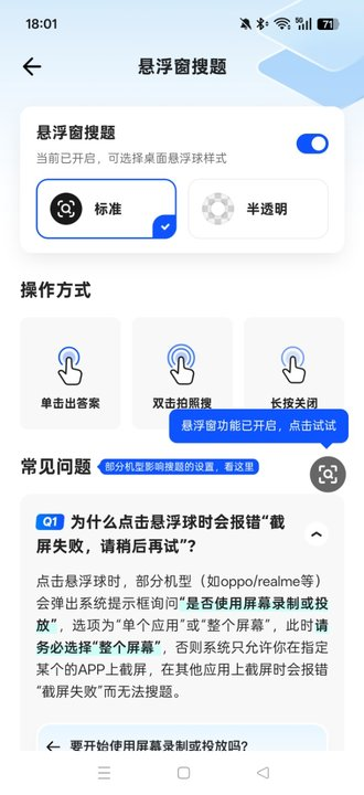 6、最后,你还可以对应用的悬浮窗搜题格式显示做出调整,确保能够适应你的使用习惯。