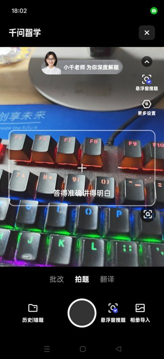 4、应用相机对准错题内容部分,保证完全能够映射到区域内,完成错题拍照识别。