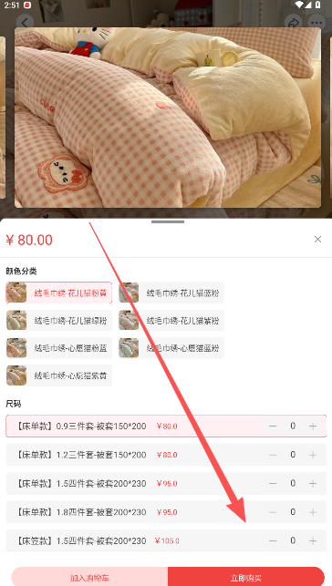 4、确认商品的颜色分类和尺码,继续点击立即购买。