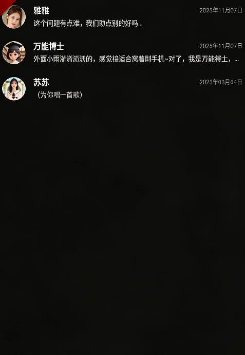 3、提供多种风格的真人设定角色,满足日常想象,随时开启对话,成为更理解你的那位伙伴;