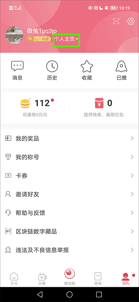2、在登录之后选择并点击我的界面中的“个人主页”的选项;
