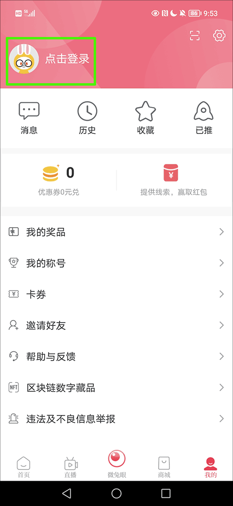 1、打开应用,在我的界面选择并点击头像位置的选项;