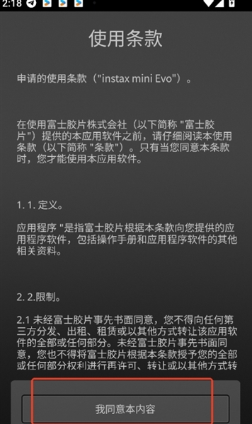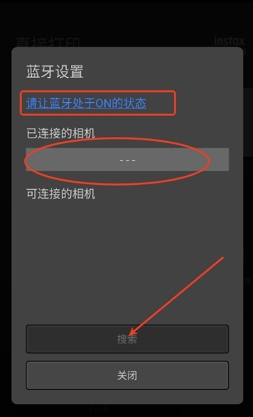 1) 先确认mini Evo已透过蓝牙连线至instax mini Evo智慧型手机应用程式。