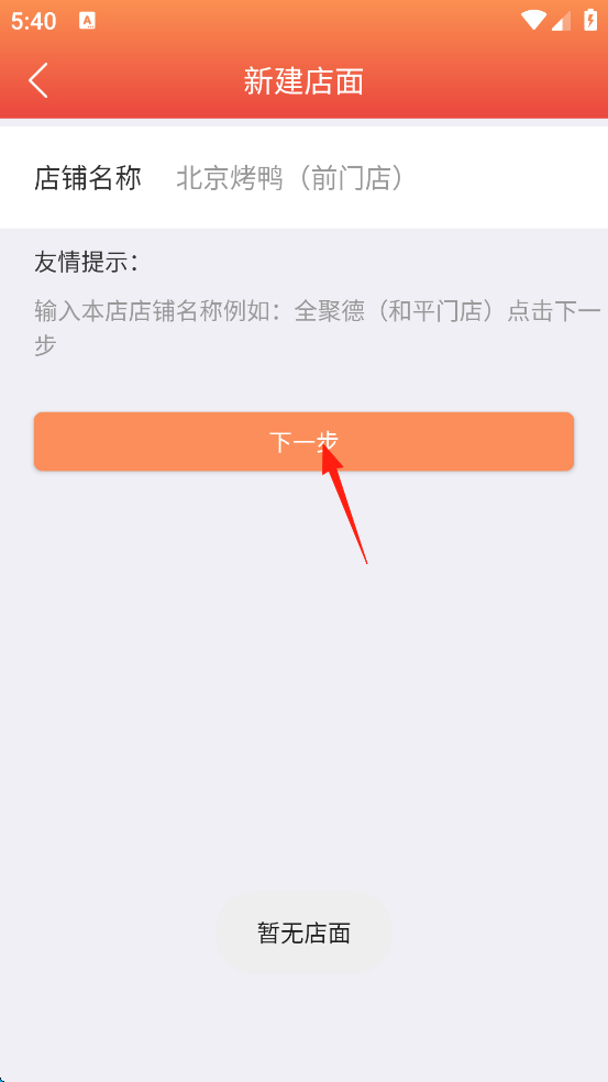 2、输入店铺名称,随后点击“下一步”。