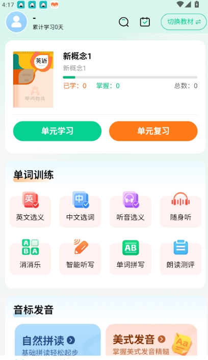 可选择单元学习功能对各种英语教材中每个单元的单词资源进行全面学习。