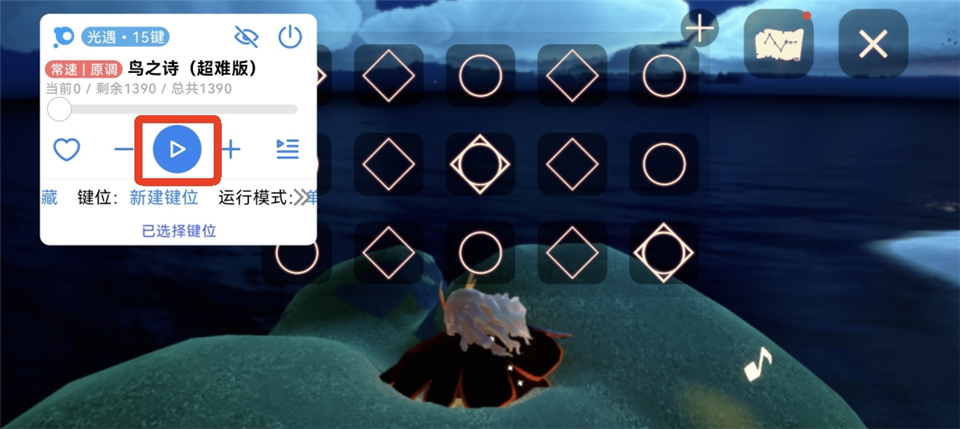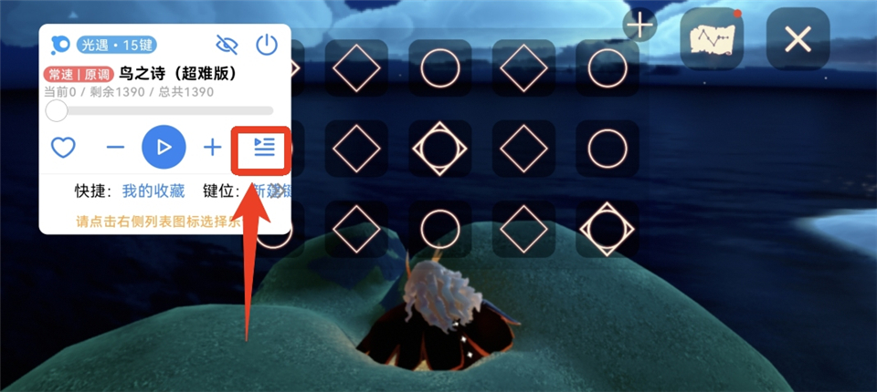 6、打开游戏,点击悬浮窗蓝色横线的按钮可以切换歌曲,如下图。