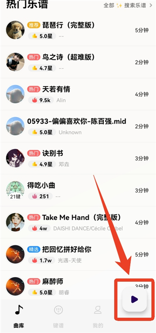 一键导入乐谱,自动解析歌曲名、歌手、音符等数据。快速上传使用。
