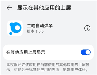 4、之后就是授权悬浮窗,点击后跳转到系统设置界面,找到二哈自动弹琴App开启。
