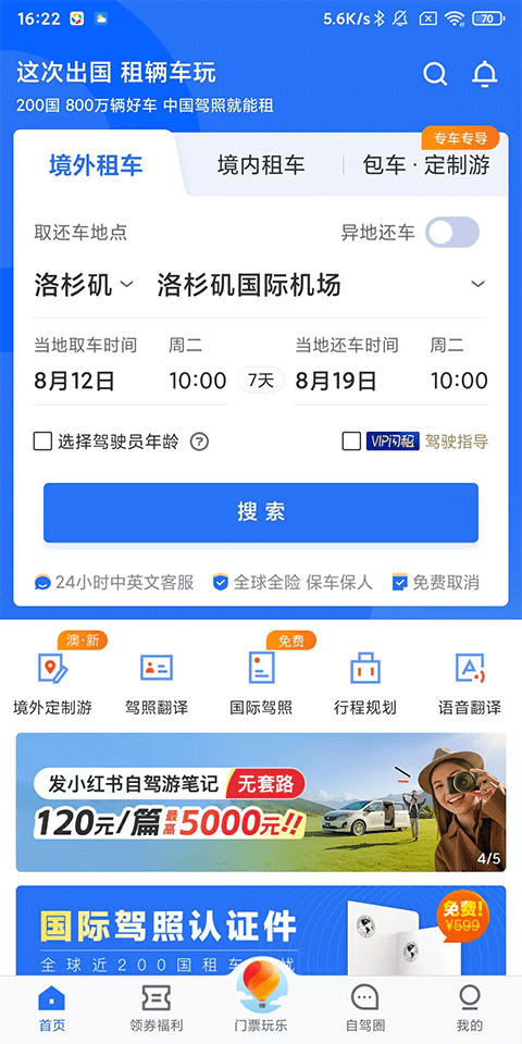 1、境外租车:200+国家,畅游全球,3000万用户之选;