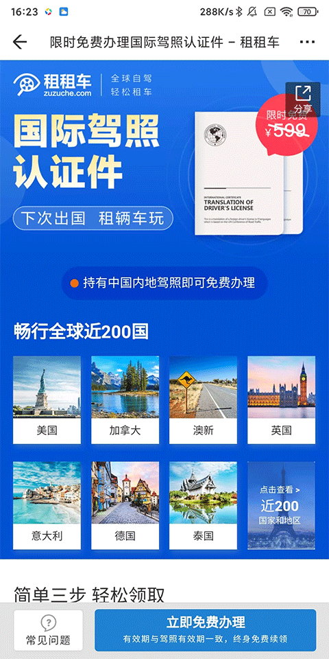 3、国际驾照认证件:免费升级,轻松自驾200国;
