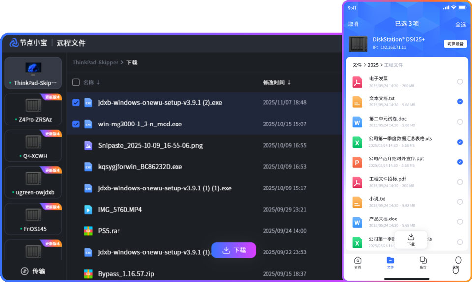 查看设备列表中的组网 IP,直接通过该 IP 访问远程设备(如访问 NAS 的 SMB 服务:\\100.66.x.x\共享文件夹)