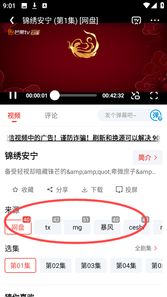 2、任意选择一部你喜欢的影视播放,这里以“锦绣安宁”为例。