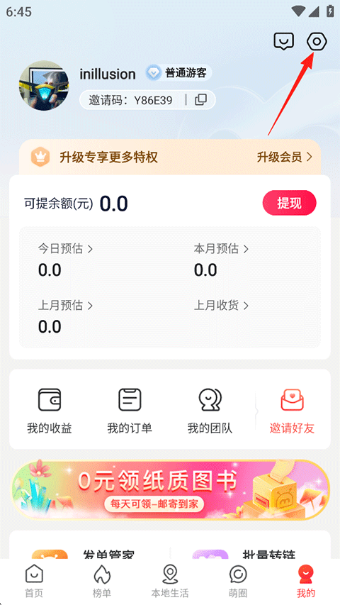1、打开呆萌价APP,点击我的-个人昵称下的邀请码;