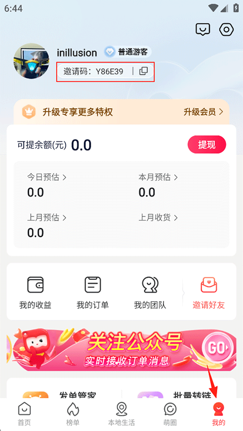 2、好友通过在注册登录时填写/扫描你的邀请码/二维码进行邀请。