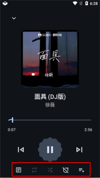 3、进入播放页面可以设置播放模式及快速切换歌曲播放。