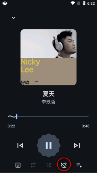 1、打开正在播放的歌曲,点下方的闹钟按钮。