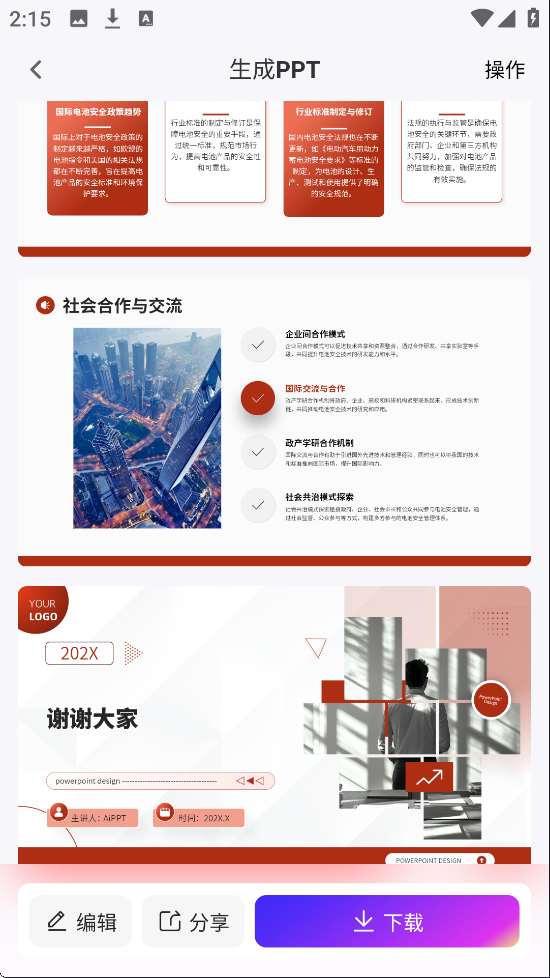 6、PPT生成好了之后会自动保存,用户可以进行编辑下载以及分享等操作哦