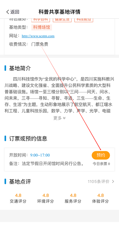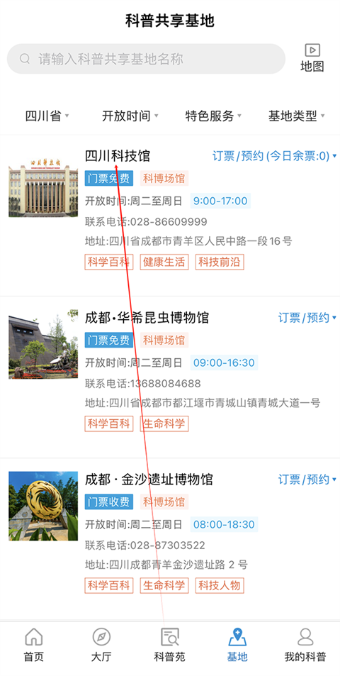 科普基地预约优化:如四川科技馆门票预约流程简化,一键完成选座、填表、提交,体验更流畅。