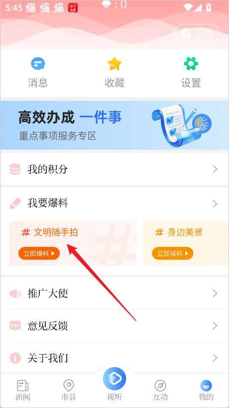 2、在个人中心中找到并点击【我要爆料】,进入投稿界面。