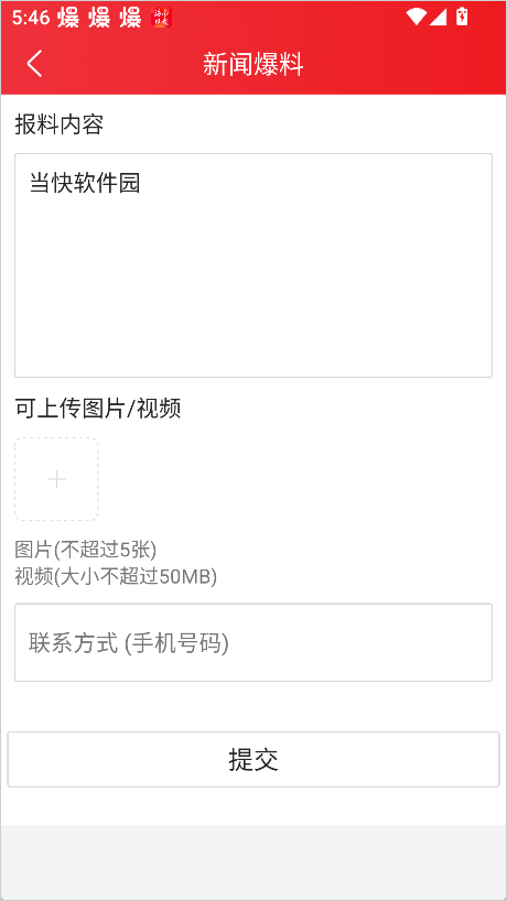 3、在爆料页面输入标题和正文内容,可以附加图片或视频等素材,检查无误后点击【发布】即可完成投稿。