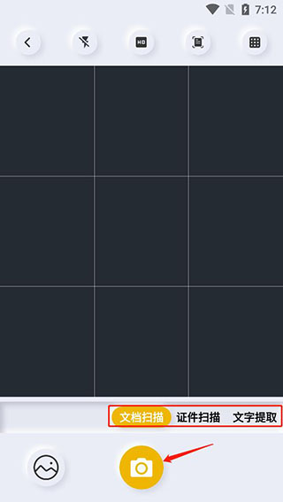 2、只要点击你想要的扫描方式,比如文档扫描,对准文档进行拍摄就可以快速进行扫描,同时还可以在旁边快速切换到其他的扫描方式;