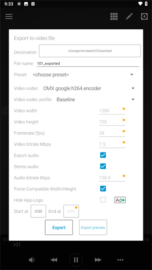 使用较低分辨率的预设或使用 Avee Music Player Premium版本,在那里可以更好地控制导出选项。通过这种方式,文件大小可以增加或减少,因为文件大小主要取决于音频持续时间和导出设置,例如视频比特率、帧率等。