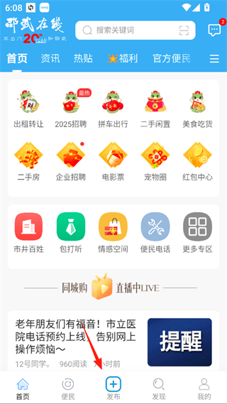 1、打开邵武在线App,点击发布