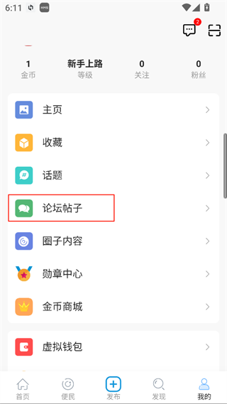 4、发布成功后可在【我的-论坛帖子查看】