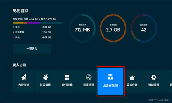 3、将U盘插到小米盒子上,选择【电视管家】