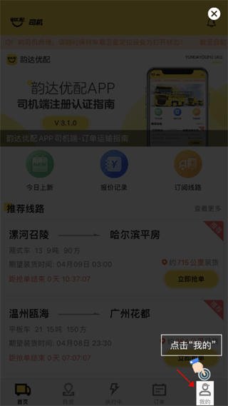 韵达优配司机版如何从货主切换到司机角色