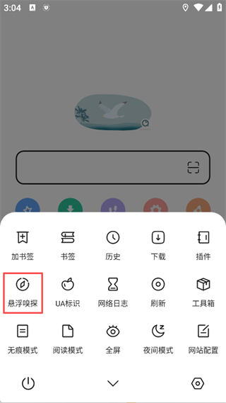 2、在弹出的功能菜单中,选择悬浮嗅探选项。