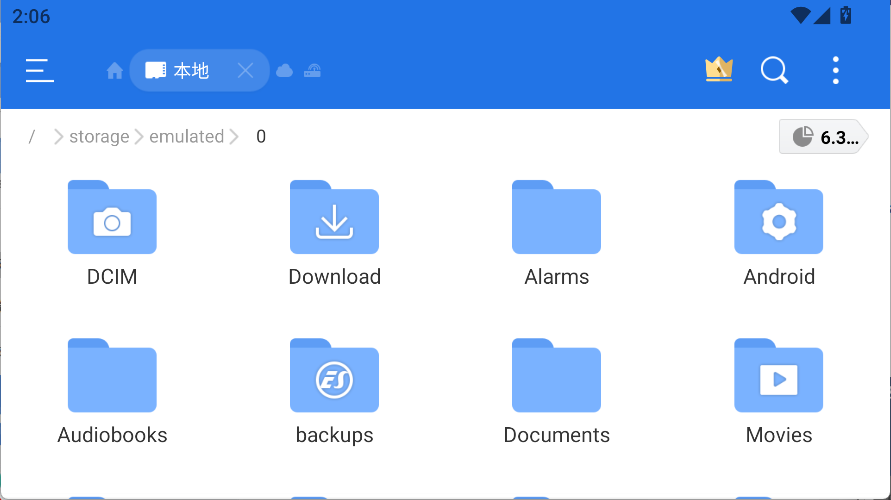 1、打开es文件浏览器,显示的是本机上的文件。