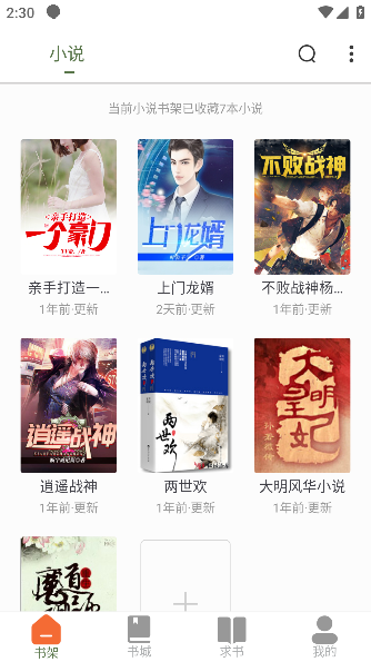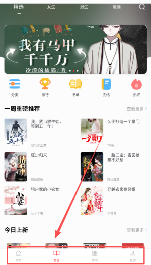 1、打开软件进入到书城页面可以看到许多的小说和功能