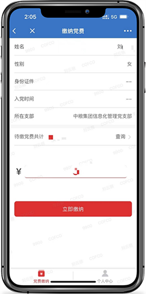 以“中粮E+”为应用入口,缴纳党费时自动唤起微信支付,随时随地进行缴费。