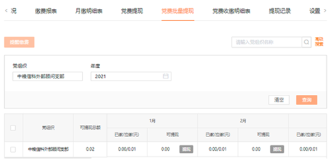 一键触发可批量提取多月党费,系统自动将党费归集到各月报表,满足管理要求、便于操作。