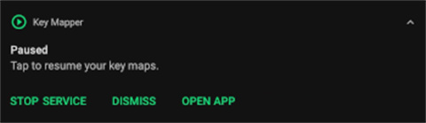 现在您的键映射应该已经开始工作了。要暂停/取消暂停所有键映射,请下拉通知托盘并点击键映射器通知,以在暂停和运行之间切换。