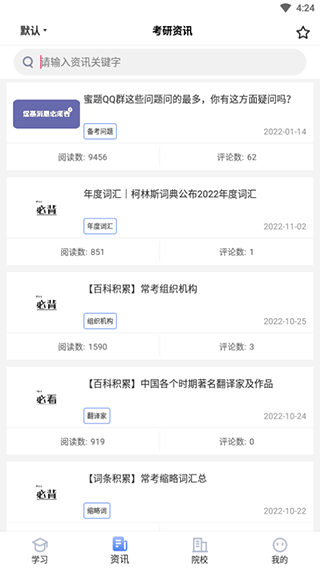 各院校的简介+上岸学长学姐的经验贴+当下的考研资讯热点,帮助您更好的择校和备考。